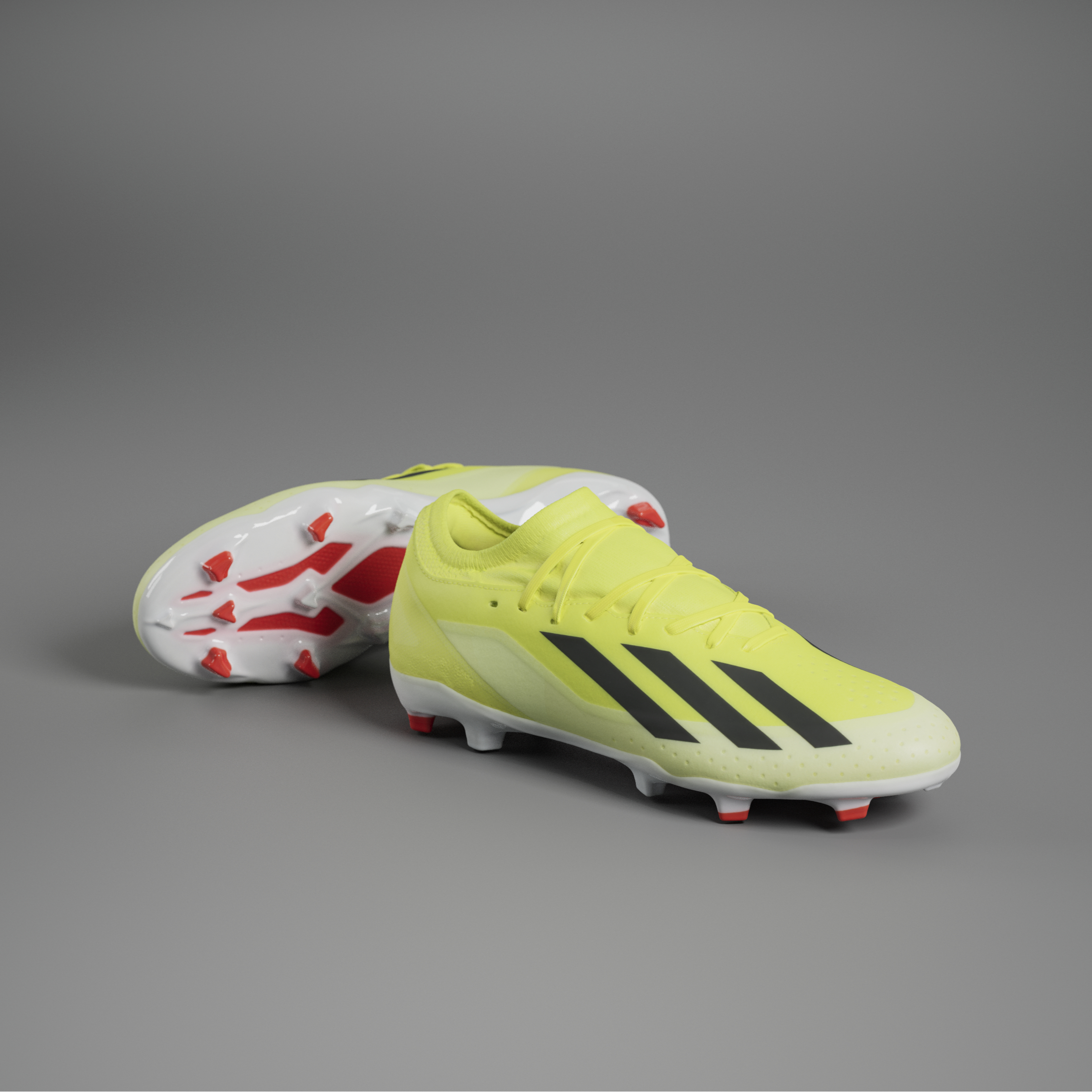 Mit seinem auffälligen Design in Team Solar Yellow, Core Black und Cloud White ist der X Crazyfast League FG nicht nur funktional, sondern auch ein echter Hingucker auf dem Platz.