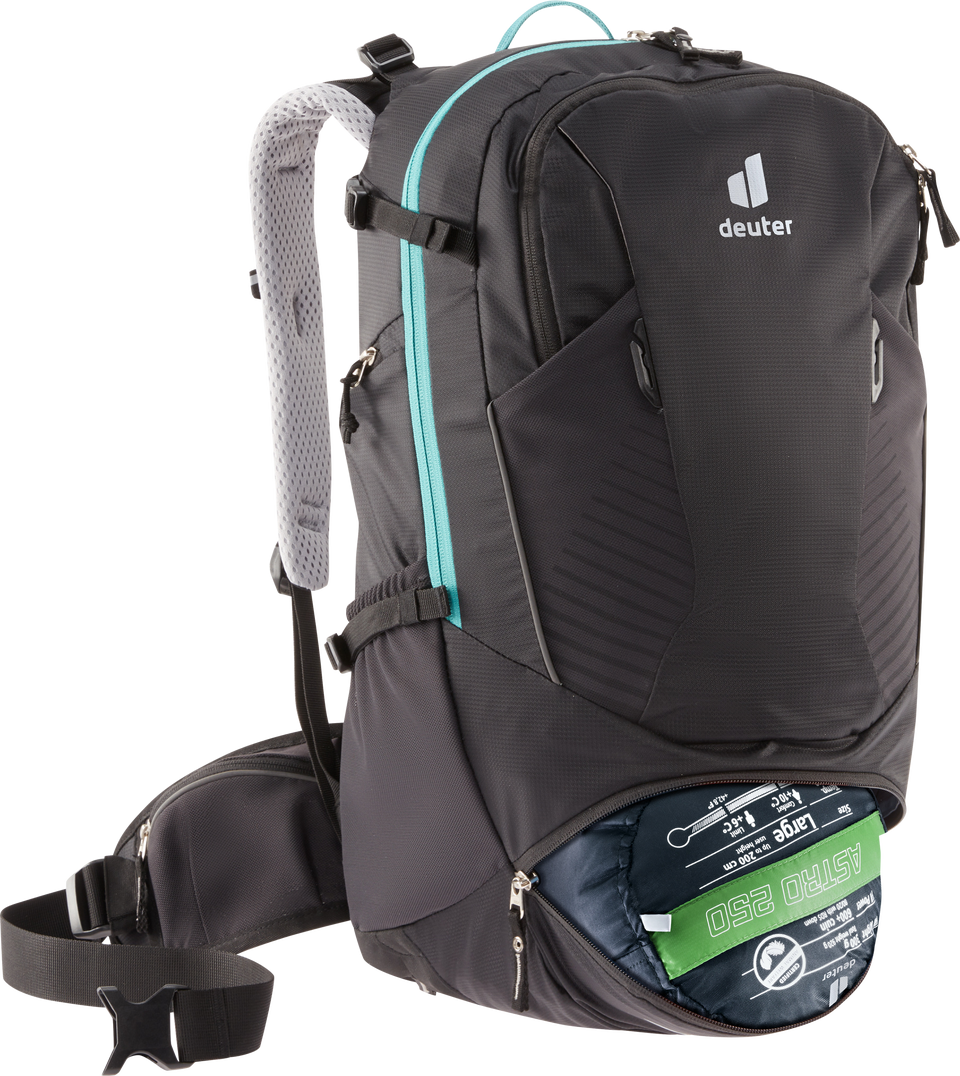 Der neue Trans Alpine Rucksack in neuem Design bietet die gewohnte Qualität und Ausstattung. Ganz neu ist die einfach und schnell handzuhabende Helmhalterung sowie das von außen leicht zugängliche Pumpenfach. Das neue Rückensystem bietet verbesserte Belüftung aufgrund geringerer Auflagefläche und flexiblere Schulterträger für mehr Bewegungsfreiheit.