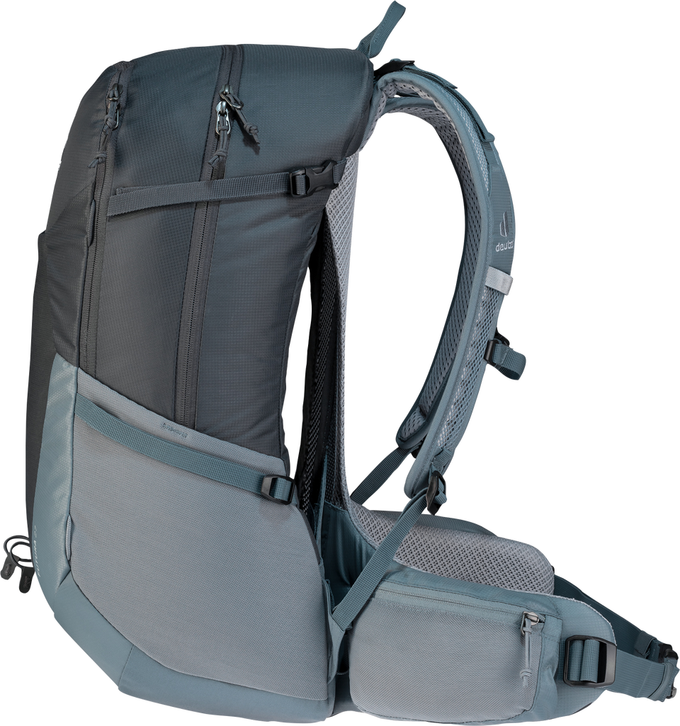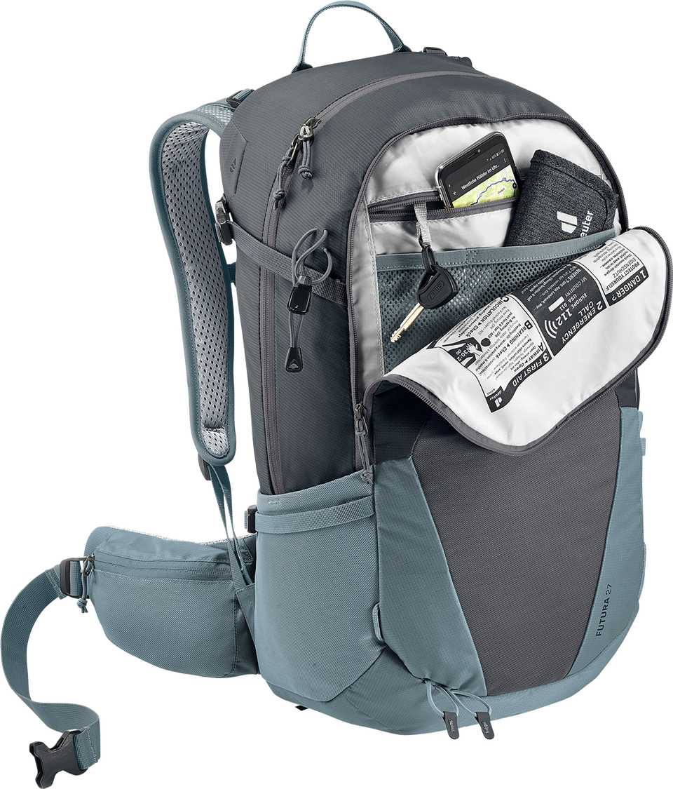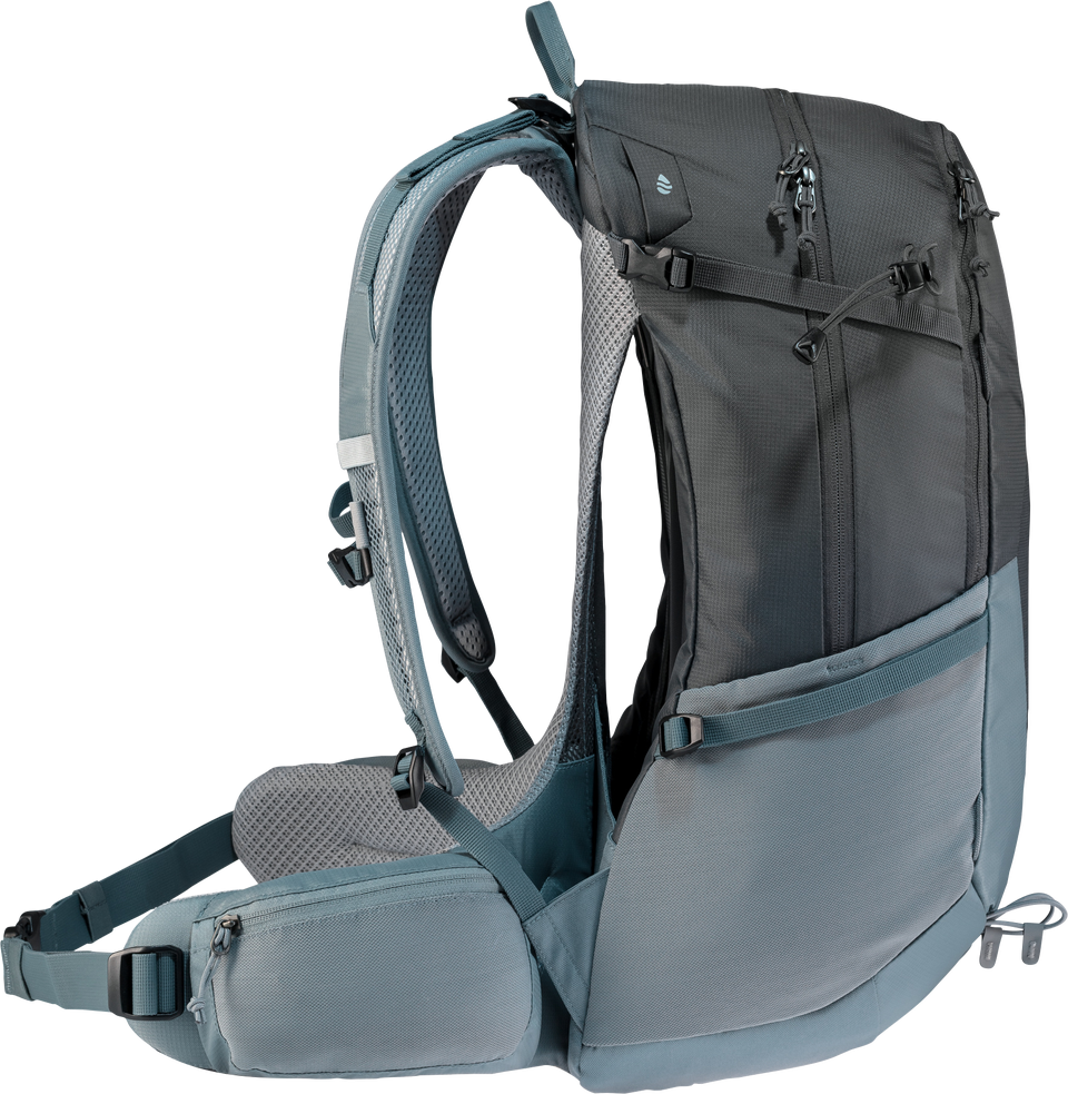 Der leichte und funktionelle Wanderrucksack ist ideal für sportliche Tageswanderungen: Das Aircomfort Rückensystem ist super komfortabel und sorgt mit dem neuen Mesh für maximale Belüftung am Rücken. Das bedeutet: bis zu 25 % weniger schwitzen und damit eine höhere Leistungsfähigkeit. Sollte die Kleidung doch mal feucht werden, kann sie in der elastischen und luftdurchlässigen Fronttasche, während der Wanderung, schnell trocknen. Das Hauptmaterial der Futura-Serie besteht aus bluesign(R)-zertifiziertem Material.