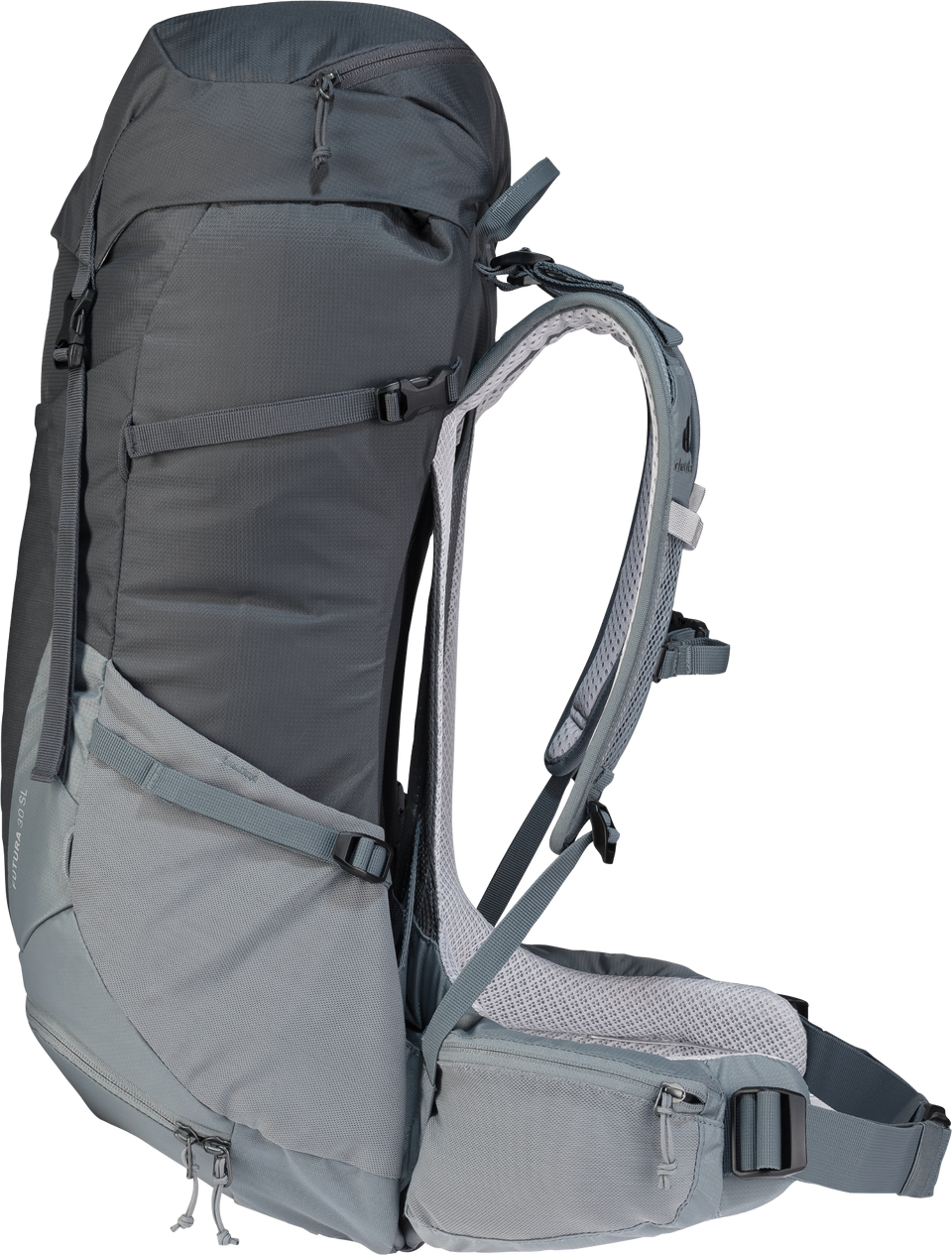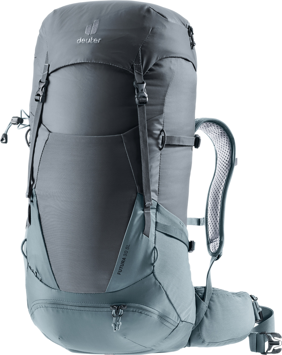 Der Futura SL ist aufgrund des kürzeren Rückens, der schmäleren Schulterträger und der konisch geformten Hüftflossen speziell auf die weibliche Anatomie abgestimmt und sorgt damit für erhöhten Tragekomfort auf längeren Tages- und Mehrtageswanderungen. Zudem bietet das neue Mesh des Aircomfort Rückensystem maximale Belüftung und verringert das Schwitzen damit um bis zu 25 %. Zudem verschafft das separate Bodenfach einen leichten Zugriff auf den Inhalt des Rucksacks. Das Hauptmaterial der Futura-Serie besteht aus bluesign(R)-zertifiziertem Material.
