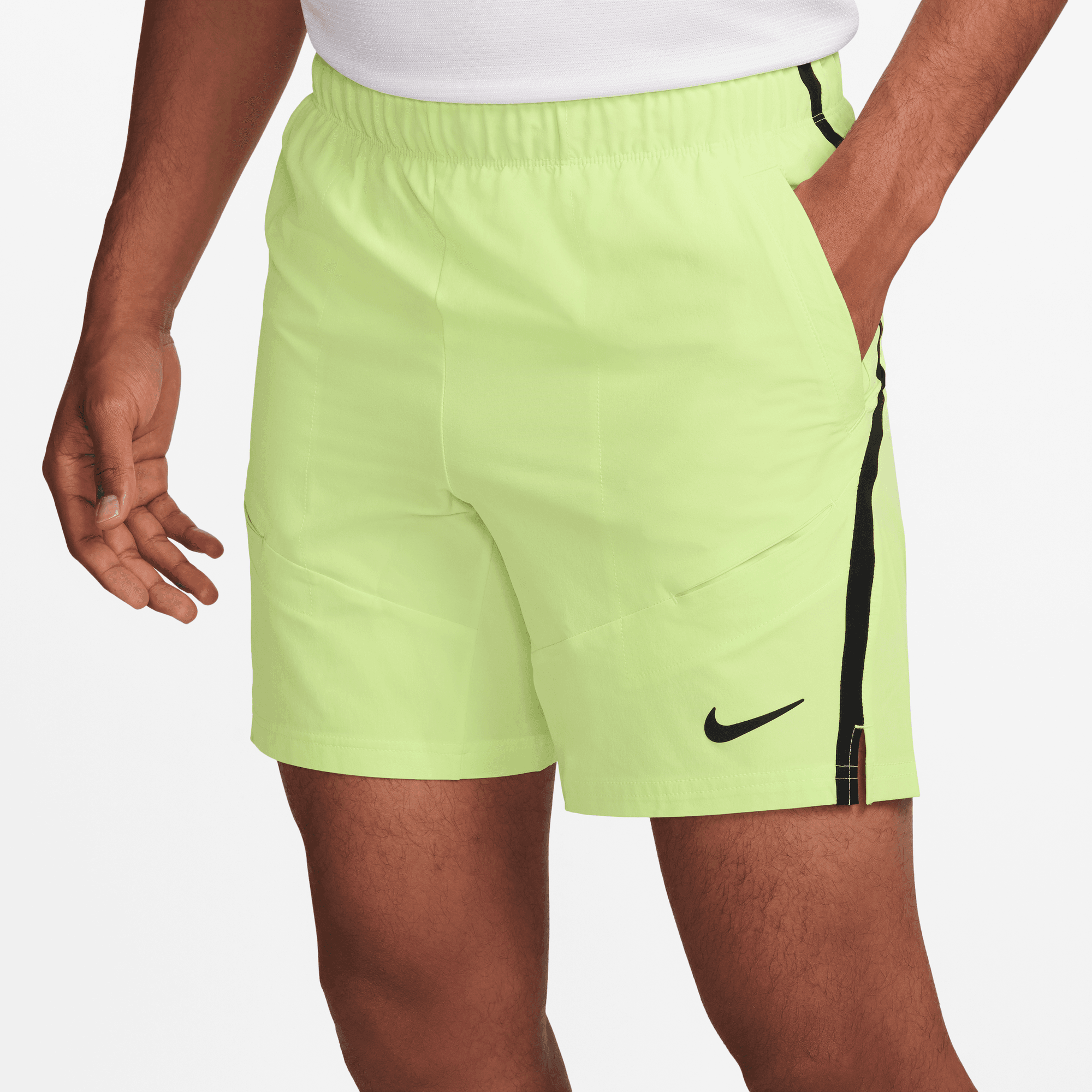 NikeCourt Advantage Men's Dri-FIT 7" Tennis Shorts Mit den NikeCourt Advantage Shorts kannst du das ganze Jahr über dein Bestes geben. Das elastische, atmungsaktive Material sorgt für ein kühles Tragegefühl, egal ob du gerade mitten im Spiel bist oder dein gewöhnliches Training absolvierst. Die Taschen eignen sich zur sicheren Aufbewahrung von Tennisbällen, ohne dich von deinem Spiel abzulenken. Schweißableitendes Design Die Nike Dri-FIT-Technologie leitet Schweiß von der Haut ab, wodurch er schneller verdunstet, und ermöglicht so trockenen Tragekomfort. Tragekomfort auf dem Platz Das in alle Richtungen dehnbare, gewebte Material ermöglicht natürliche, bequeme Bewegungsfreiheit und leitet Schweiß ab, damit es weniger an der Haut anklebt. Profi-Style Das innovative Taschendesign eignet sich zur sicheren Aufbewahrung eines Tennisballs, ohne die Passform deiner Shorts zu beeinträchtigen. More Details. Beininnenlänge ca. 18 cm. Elastischer Bund mit Kordelzug. Seitliche Belüftungen. Body: 89 % Polyester/11 % Elastan; Taschenbeutel hergestellt aus Polyester. Maschinenwäsche. Importiert. 89% POLYESTER. 11% SPANDEX