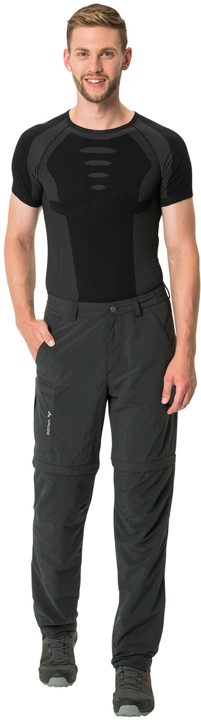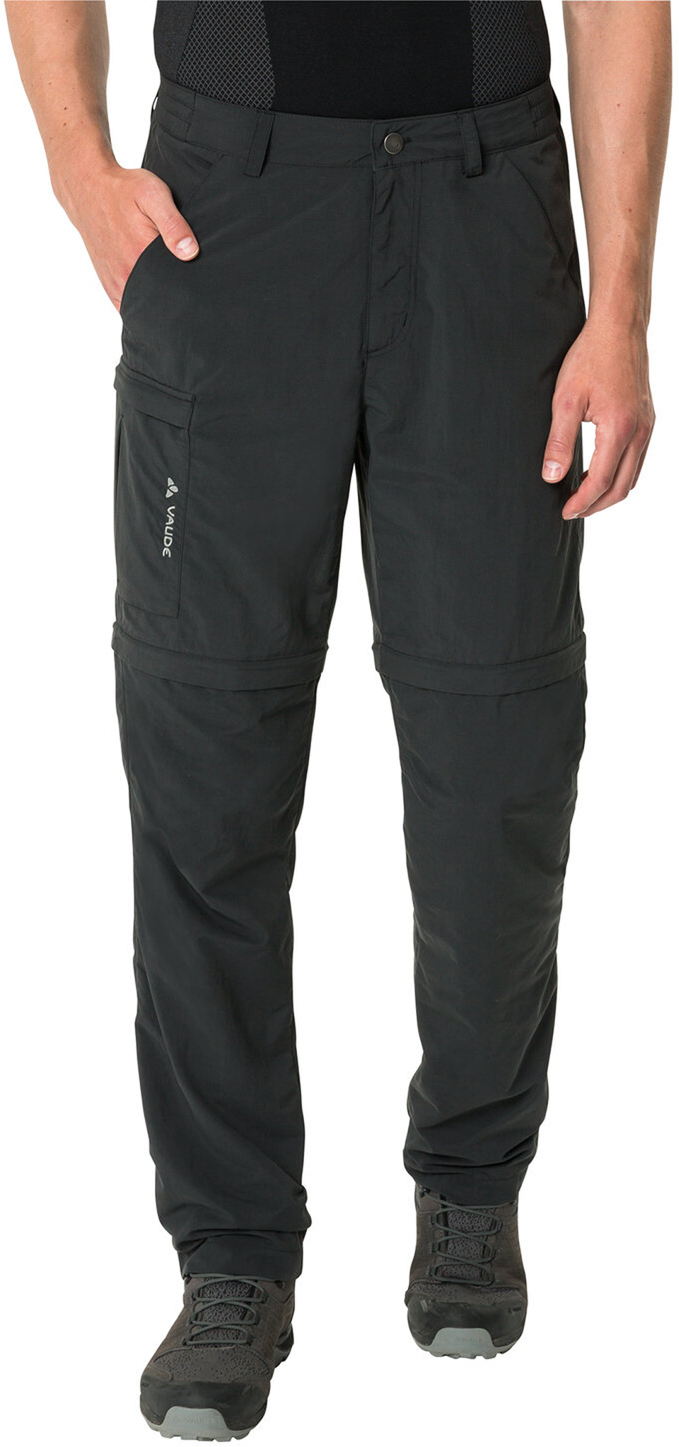 Die universell einsetzbare Men's Farley ZO Pants V kommt in ihrer Neuauflage etwas schmaler geschnitten. Dank der natürlichen Geraniol-Ausrüstung kann die Hose mit mückenabwehrenden Eigenschaften auftrumpfen und bewahrt mit einem UV-Schutz von 50+ (UPF) die Haut vor Sonnenbrand. Die vorgeformten Knie und die elastischen Einsätze am Bund geben ein Plus an Bewegungsfreiheit. Eine praktische Taschenanordnung verwahrt alles Nötige. Rundum bequeme, klein verpackbare Zipp-off Hose, die sich auf Trekking-Touren und Wanderungen in feucht-warmen Regionen oder für die nordischen Mückenreviere im Frühsommer bestens bewährt. Das VAUDE Green Shape-Label steht für ein umweltfreundliches, funktionelles Produkt aus bluesign® zertifizierten und nachhaltigen Materialien.