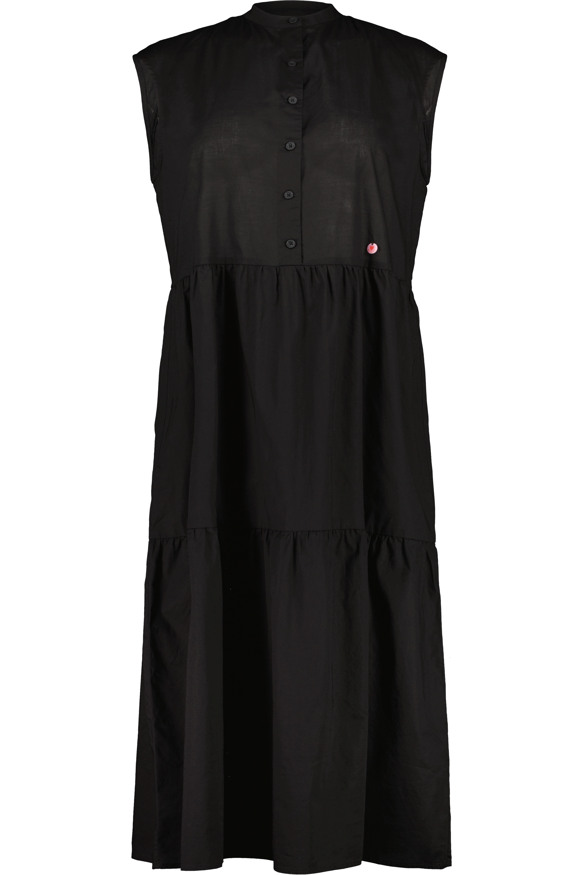 Wadenlanges, luftiges Kleid mit kleinem Stehkragen und Knopfleiste, leicht überschnittene Ärmel. Das Kleid aus leichtem Biobaumwoll-Gewebe ist für einen eigenständigen Look in Etagen unterteilt. Die drei Motive der Allover-Prints basieren auf floralen Designs zu unserer aktuellen Kollektion LA VIA.