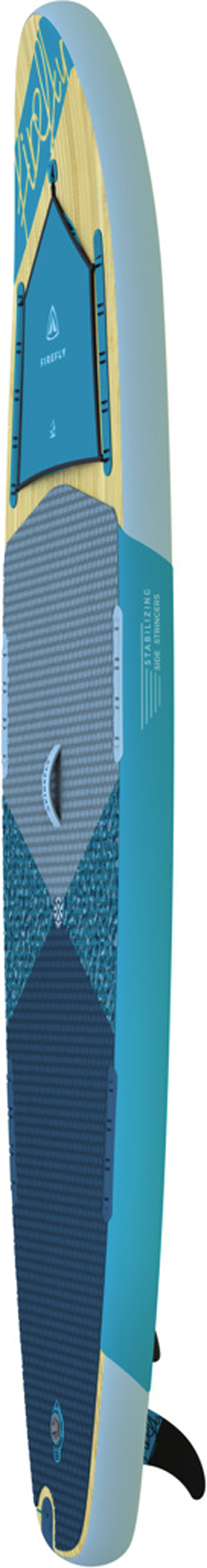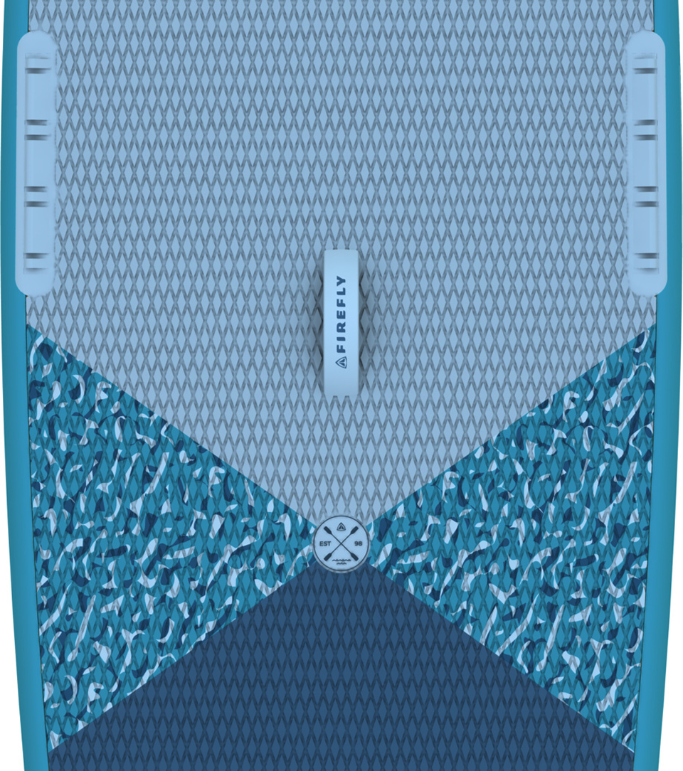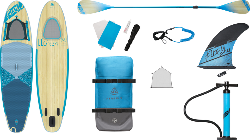 Platz für zwei. FIREFLYs iSUP 400 FAM ist ein aufblasbares Stand Up Paddle mit Kajakfunktion in Dropstitch-Konstruktion, das über eine besonders große Standfläche verfügt. Ein tolles Feature ist zudem das große Sichtfenster im Vorderbereich inklusive Gepäcknische mit wasserdichter Abdeckung. Das Stand Up Paddle Board kommt mit einer Fixierung für zwei Kajaksitze und für Dry Bags, mit einem Kombipaddel aus Alu, einer Doppelhubpumpe sowie mit einem Ersatzteil-Kit. Der Transport des Sets erfolgt in dem mitgelieferten Packsack mit Rucksackträgern. Ebenfalls im Set enthalten sind eine abnehmbareFinne und zwei integrierte Softfinnen. Ein elastisches Gepäcknetz, eine Leash und eine Seilöse sind ebenfalls Teil der Ausstattung. Die maximale Belastbarkeit des Boards beträgt 140 kg.