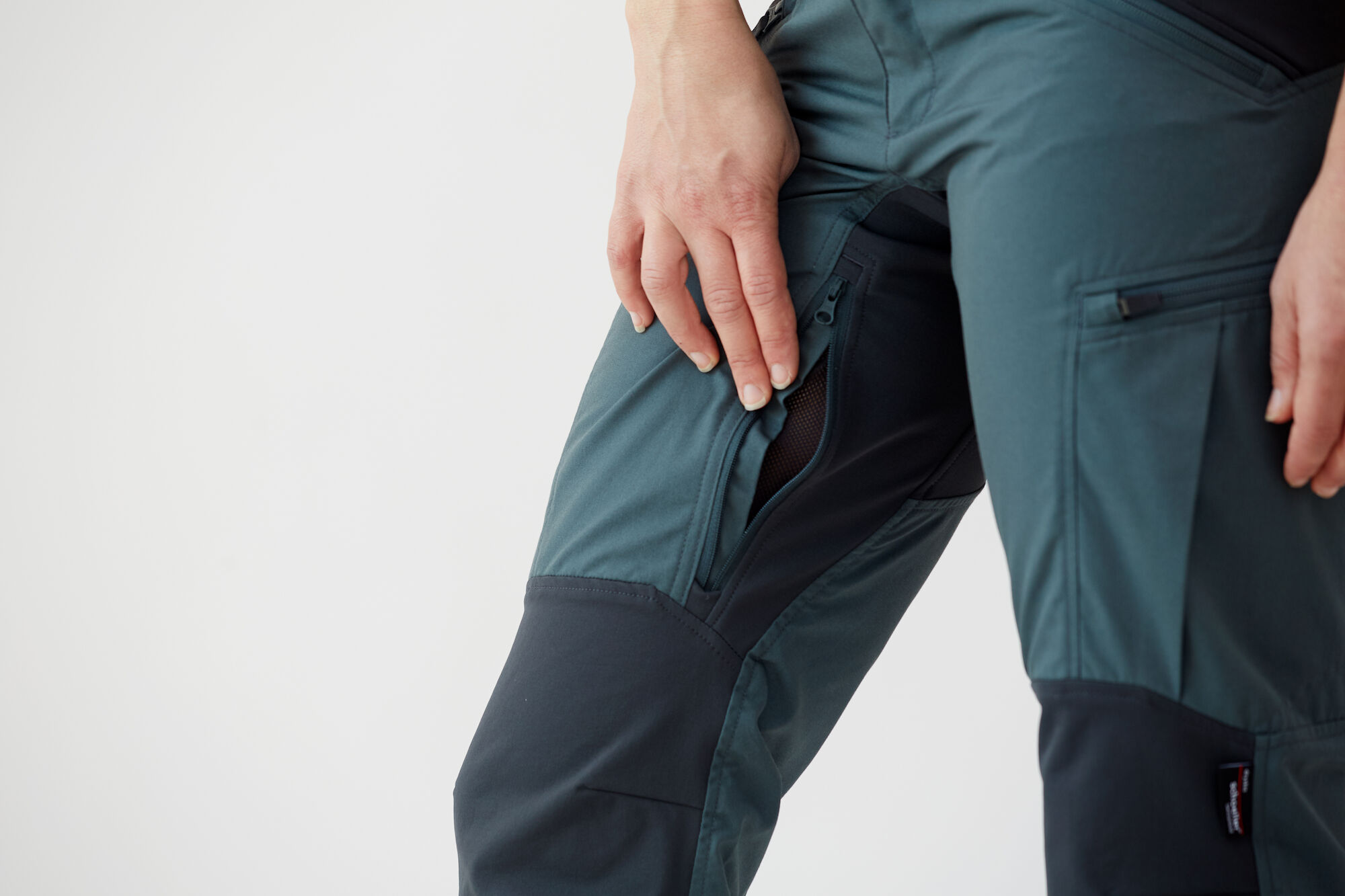 - Belüftung: Reißverschlüsse an den Oberschenkelinnenseiten und in den Taschen sorgen für optimale Belüftung.