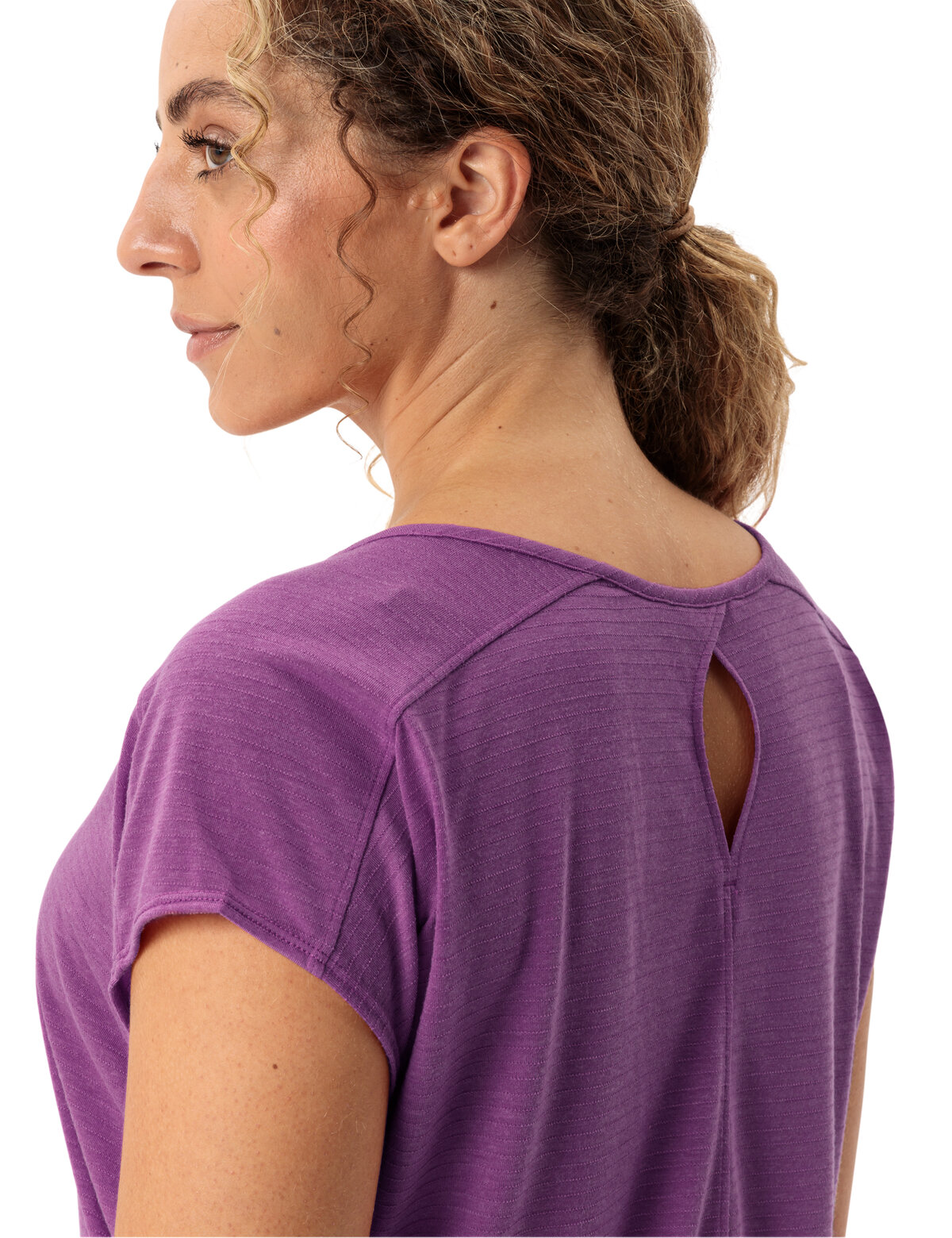 Passt immer: Das T-Shirt eignet sich bestens für moderate Wanderungen und als Basic im Alltag – und ist dabei noch rundum umweltfreundlich. Der Materialmix aus 75 % recyceltem Polyester und 25 % Woodfiber sorgt für einen kühlenden Effekt und verhindert unangenehme Gerüche an warmen Tagen. Das T-Shirt nimmt beim Wandern die Feuchtigkeit gut auf, ohne sich nass anzufühlen und trocknet sehr schnell. Zudem fühlt sich das Material auch bei schweißtreibenden Touren angenehm weich auf der Haut an. Die überschnittenen Arme schützen die Schultern beim Wandern vor Sonneneinstrahlung. Der Bundabschluss liegt figurschmeichelnd und luftig an der Hüfte auf. Modische Akzente liefern der etwas tiefere Halsausschnitt sowie eine kleine dekorative Rückenaussparung. Unser VAUDE Green Shape-Label steht für ein umweltfreundliches, funktionelles Produkt aus nachhaltigen sowie bluesign® zertifizierten Materialien.